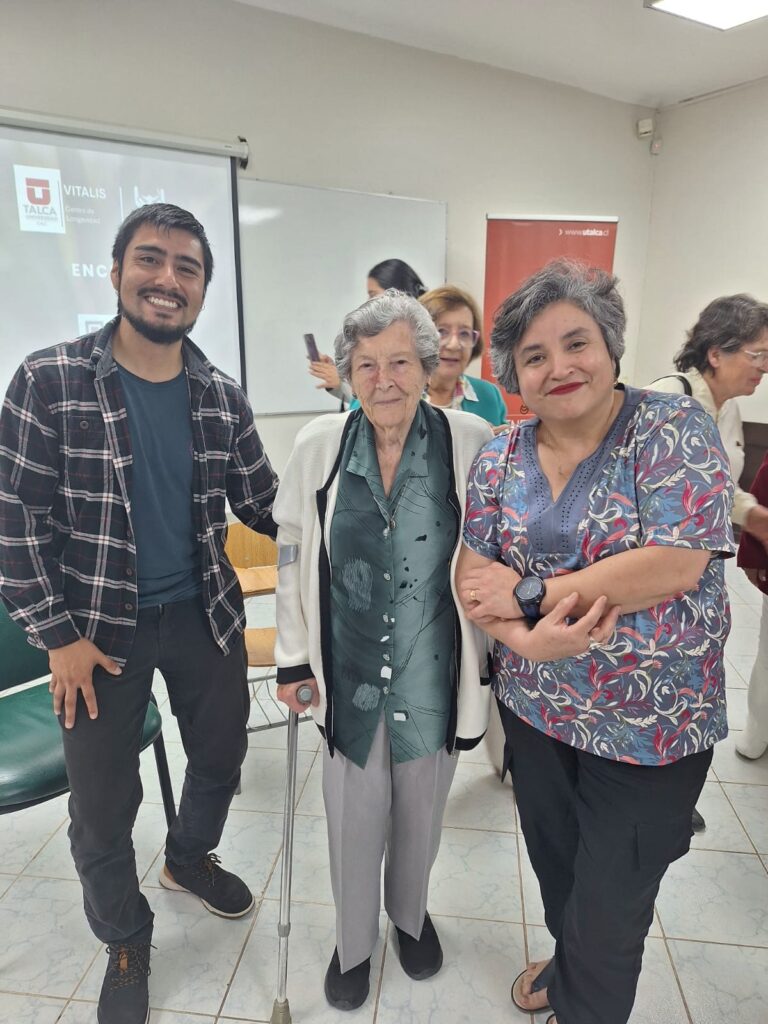 La actividad tuvo como invitada especial a la Sra. Luz Victoria Vale Maulme, recientemente distinguida con el premio “Vitalis del Maule 2025” por su liderazgo, compromiso comunitario y destacada labor en la promoción del envejecimiento positivo en la región.